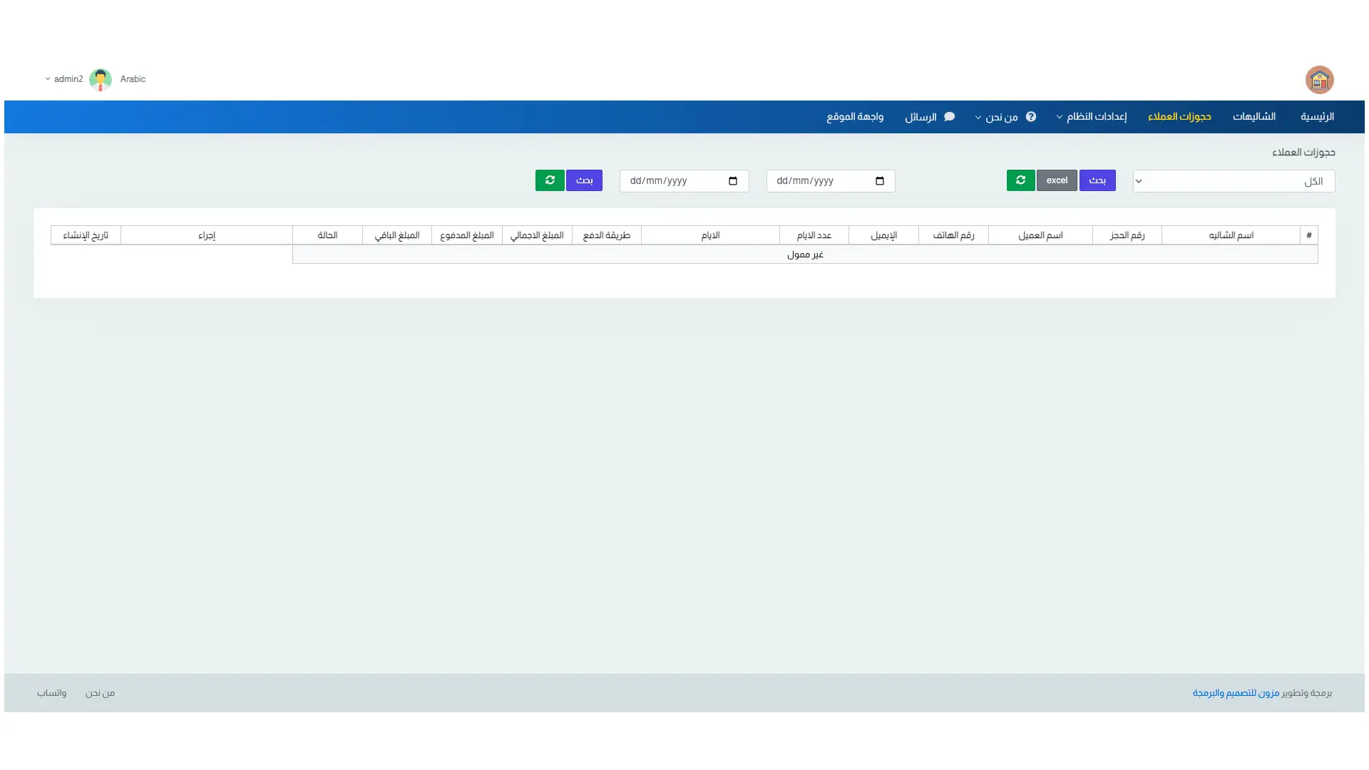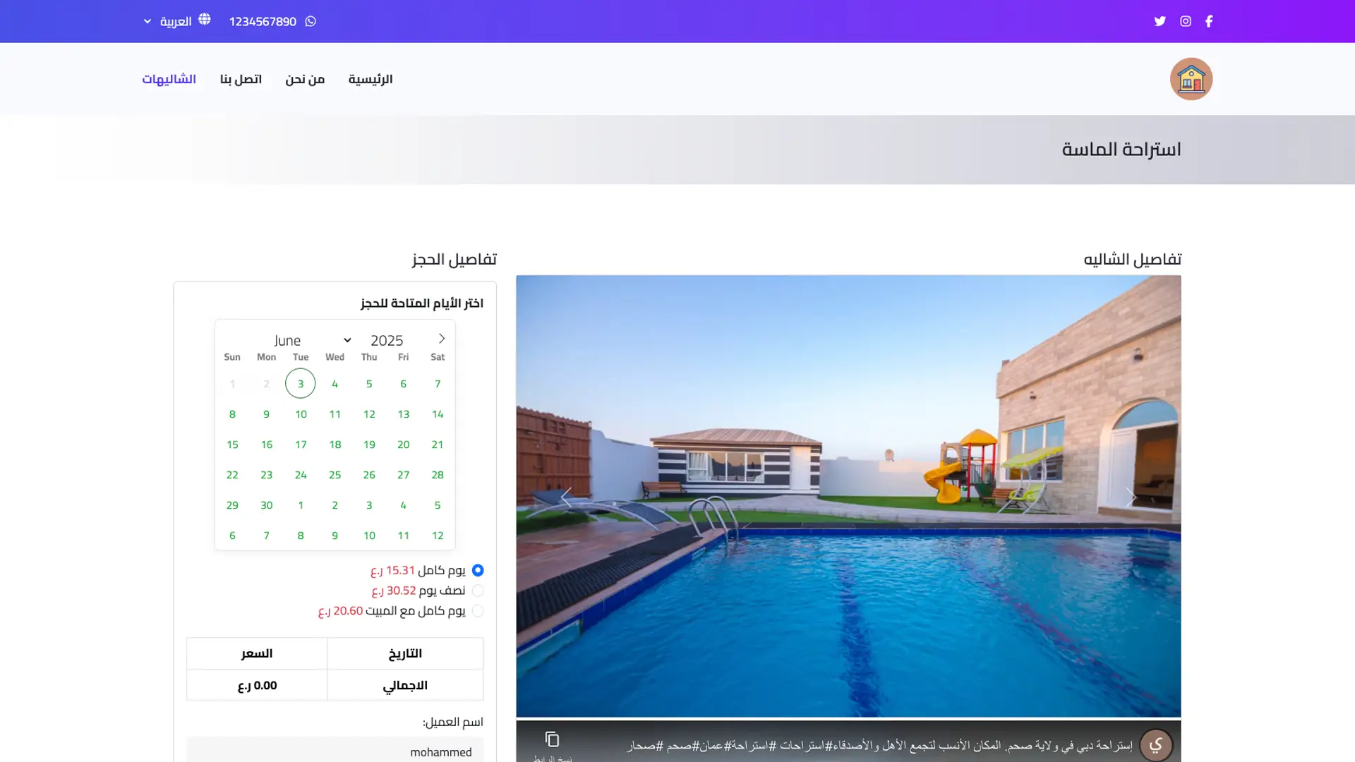 Allows searching and filtering by specific days and dates (e.g., weekends or selected dates) to quickly and accurately find available bookings and chalets. Enhances customer experience and simplifies reservation management.