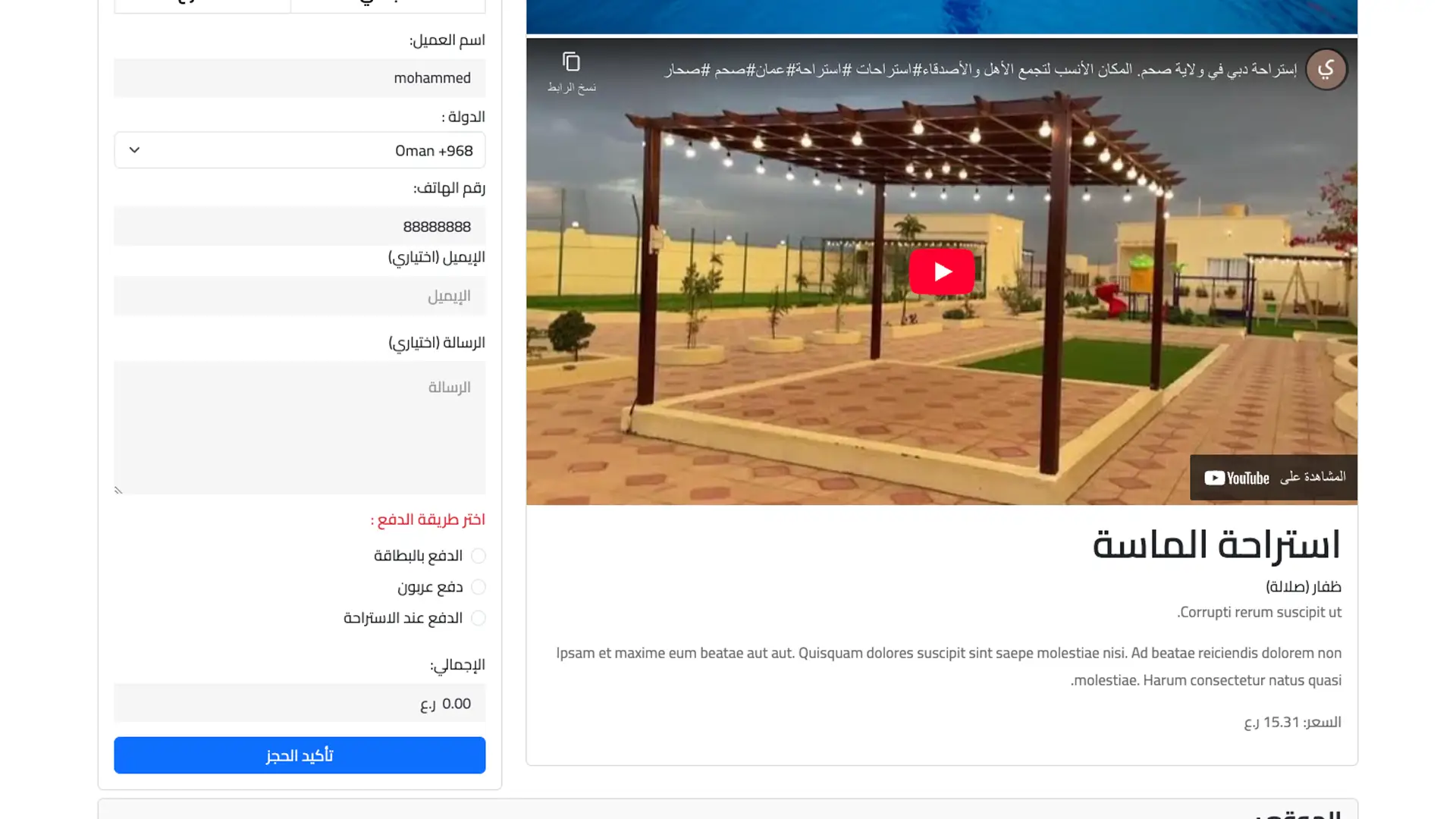 The system supports multiple online payment options such as credit cards (Visa, Mastercard), payment gateways like PayPal, Stripe, and Thawani, in addition to cash-on-arrival as an alternative option. All financial transactions are secured with advanced encryption technologies to protect customer information and prevent any fraudulent activities.