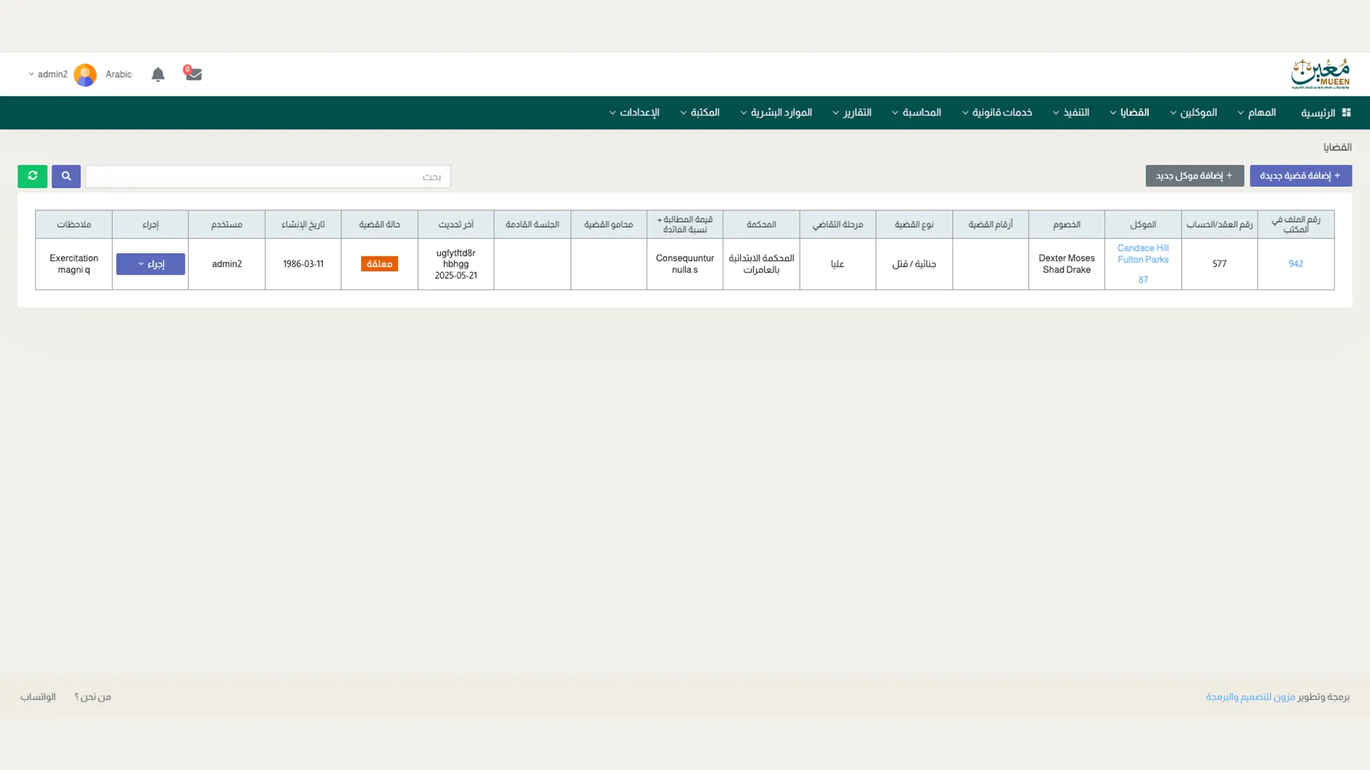 - Case Types Management – Case Statuses Management – Litigation Stages Management – Cases Management