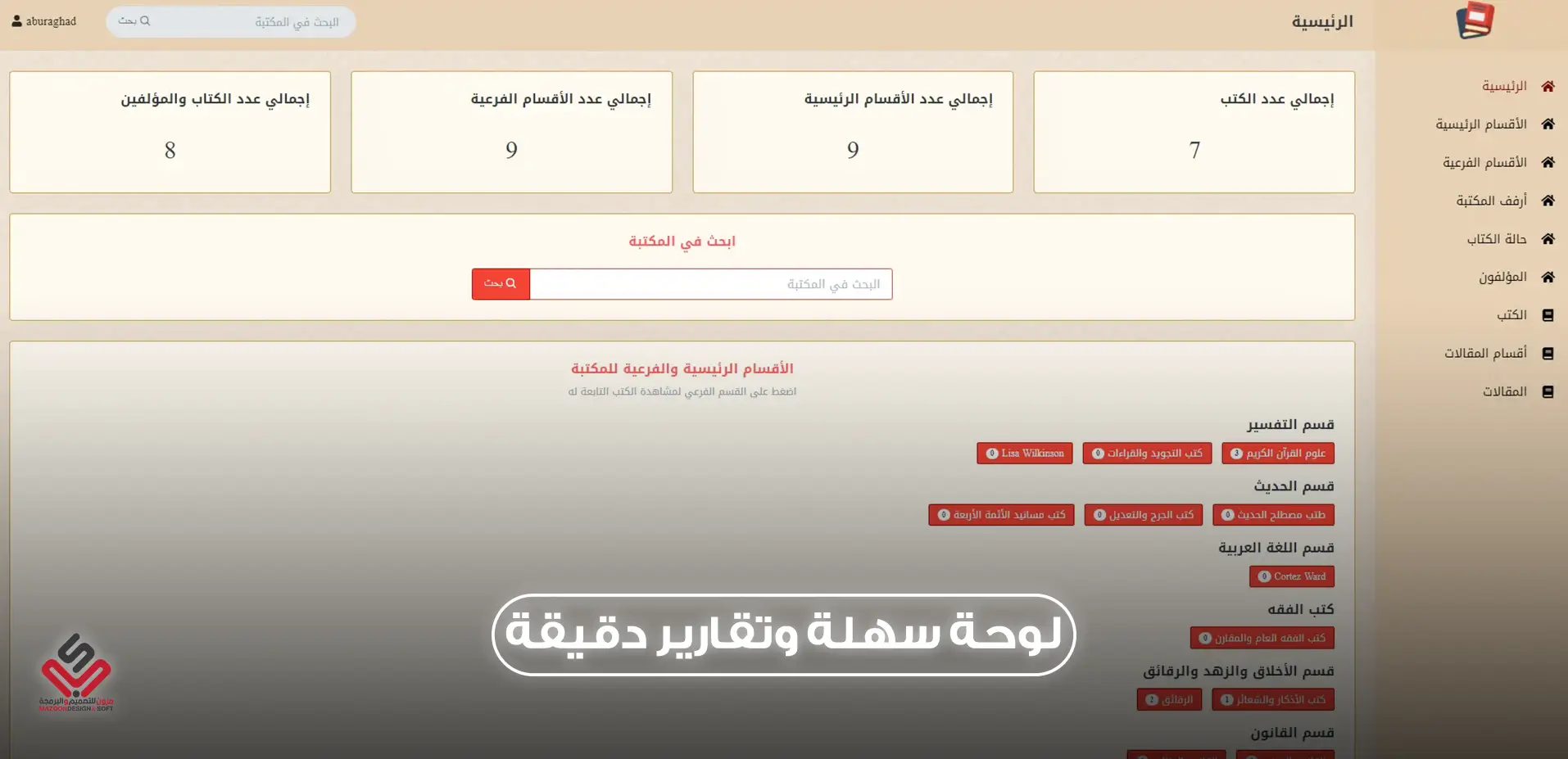 With a user-friendly interface supporting both Arabic and English, the system is suitable for educational institutions, cultural centers, and private libraries. It transforms traditional libraries into well-structured, modern digital libraries that save time, effort, and resources.