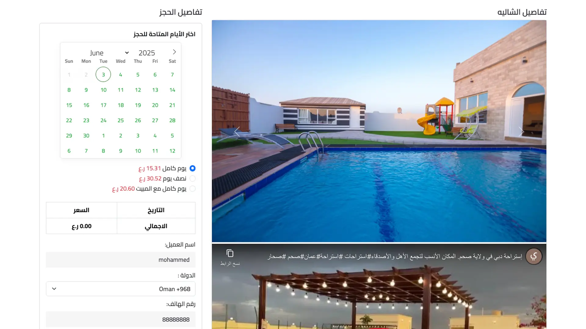 Allows searching and filtering by specific days and dates (e.g., weekends or selected dates) to quickly and accurately find available bookings and chalets. Enhances customer experience and simplifies reservation management.
