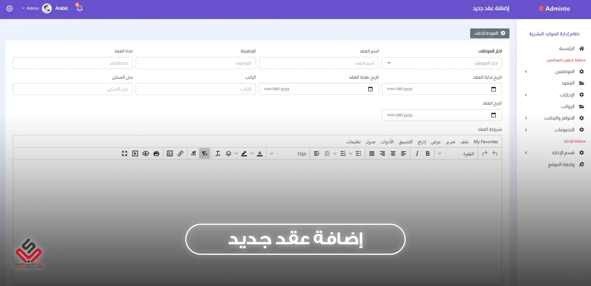 After adding employees, one or more contracts can be created for each employee, containing the contract details and terms according to the work requirements.