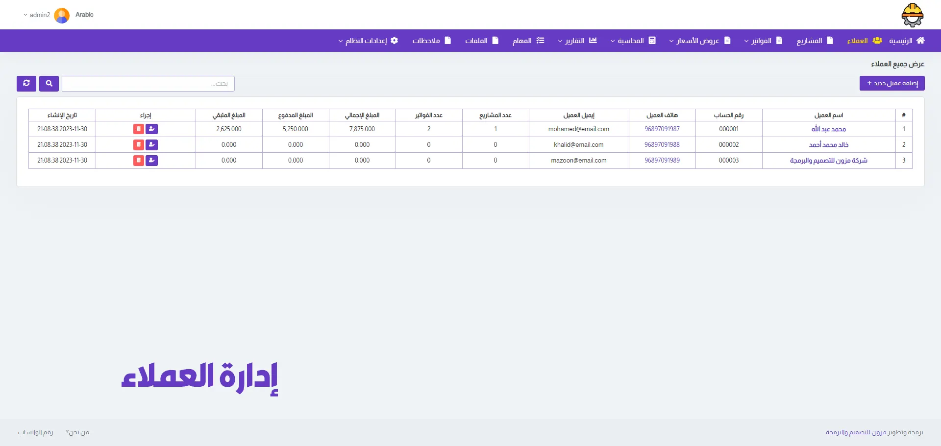 Ability to add clients (Name – Phone Number – Address – Nationality – ID Number). Easily search for any client by name, phone, or email.