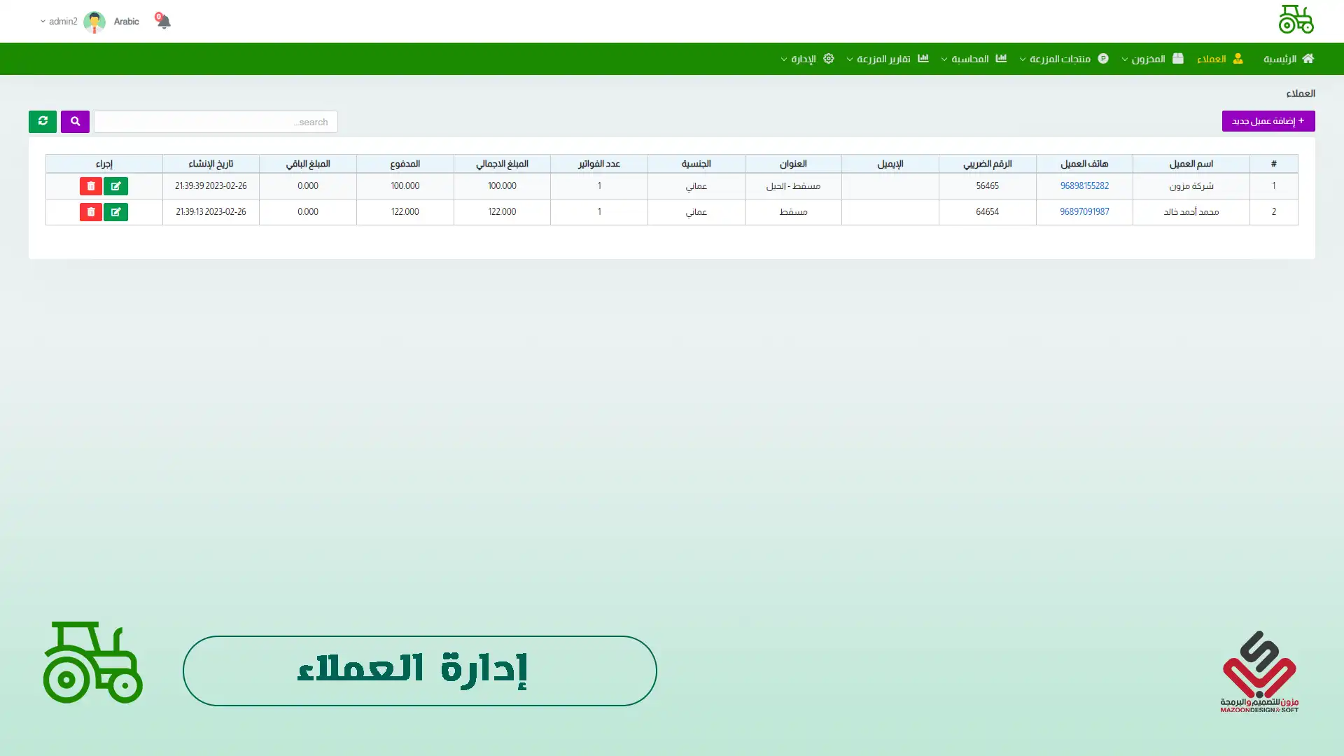 إمكانية إضافة العملاء - أكثر من عميل - ( اسم العميل - رقم الهاتف - العنوان ) ويمكن البحث عن اي عميل من خلال الاسم أورقم الهاتف أوالإيميل