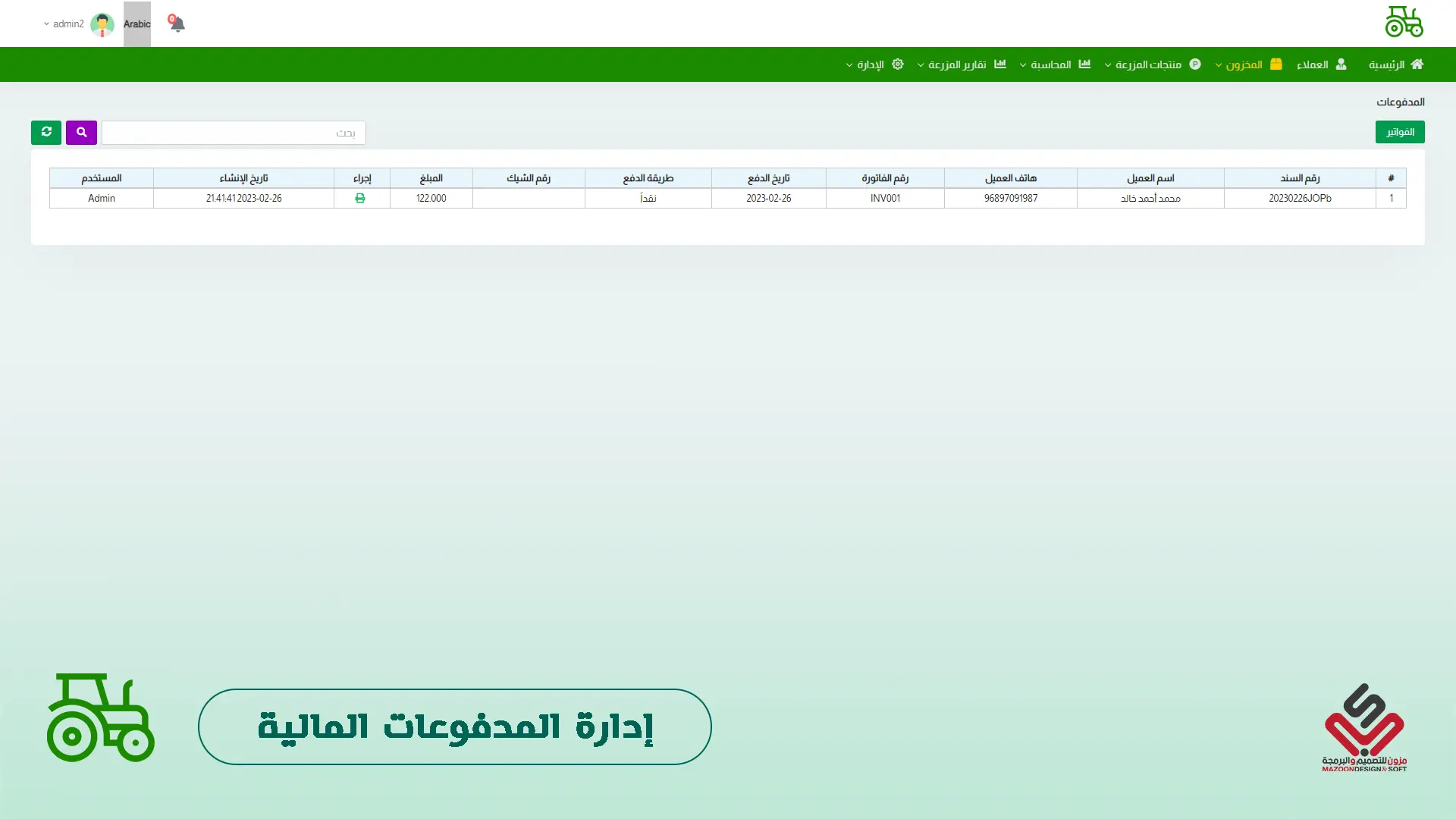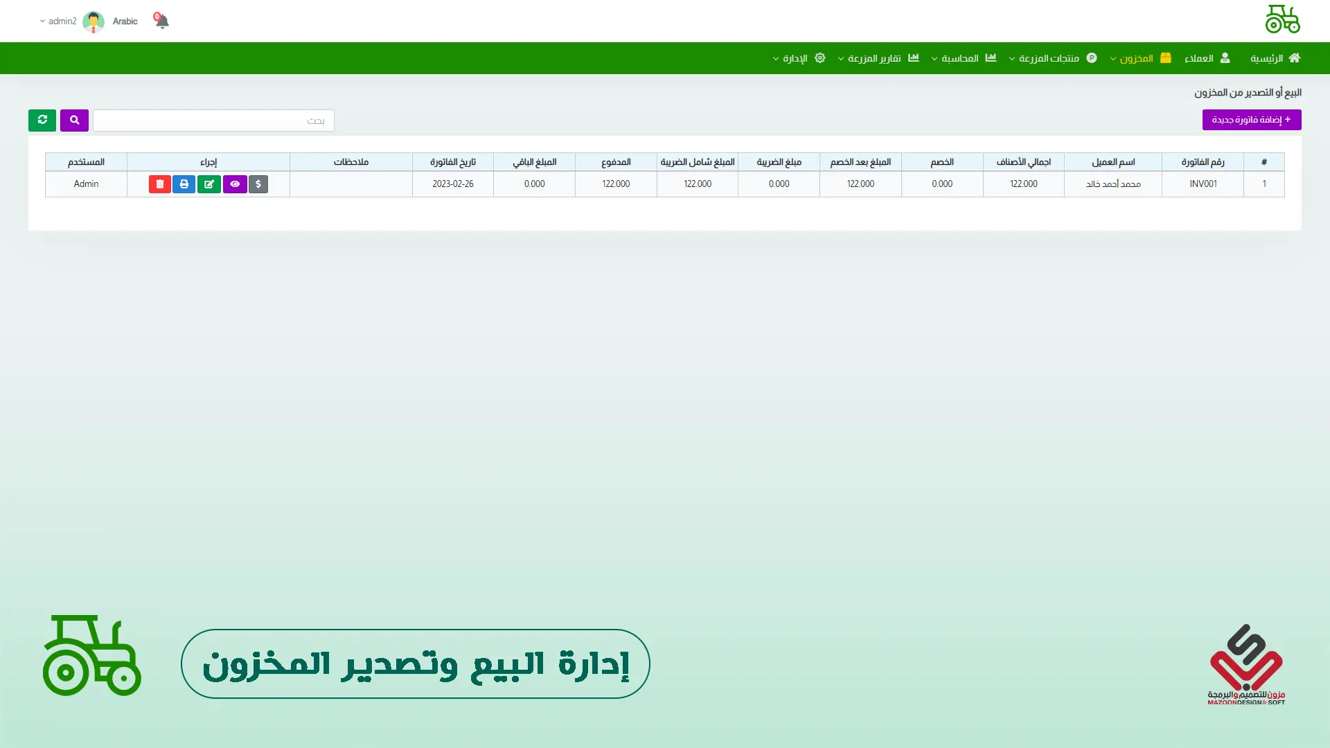 نظام إدارة المزارع بالفعل يدعم الفاتورة الإلكترونية ويمكن استخراج وطباعة الفاتورة من خلال النظام أو حفظها كملف pdf