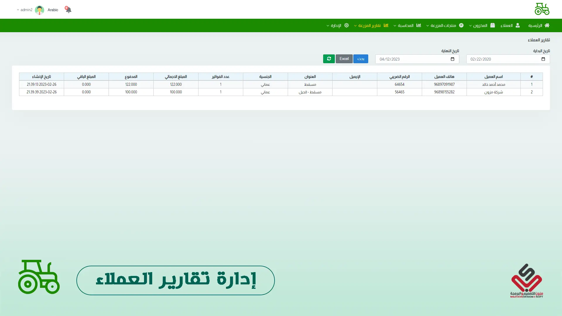 نعم بالفعل برنامج إدارة المزرعة يدعم ويحتوي على ضريبة القيمة المضافة وذلك في قسم الفواتير وكذلك في قسم المصروفات ويمكن معرفة قيمة الضريبة بين تاريخين من خلال قسم التقارير