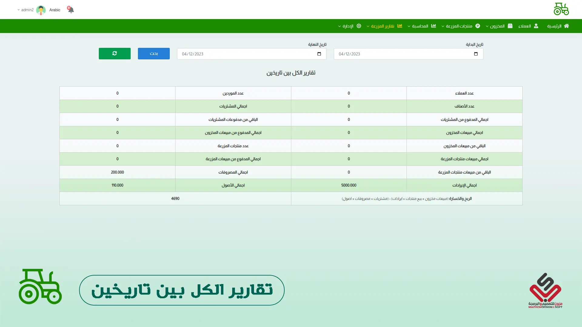 نقدّم نظامًا احترافيًا لإدارة المزارع بمختلف أنواعها، مصمم ليساعد أصحاب المزارع والمستثمرين على تنظيم أعمالهم اليومية وتحسين الكفاءة وزيادة الإنتاجية.