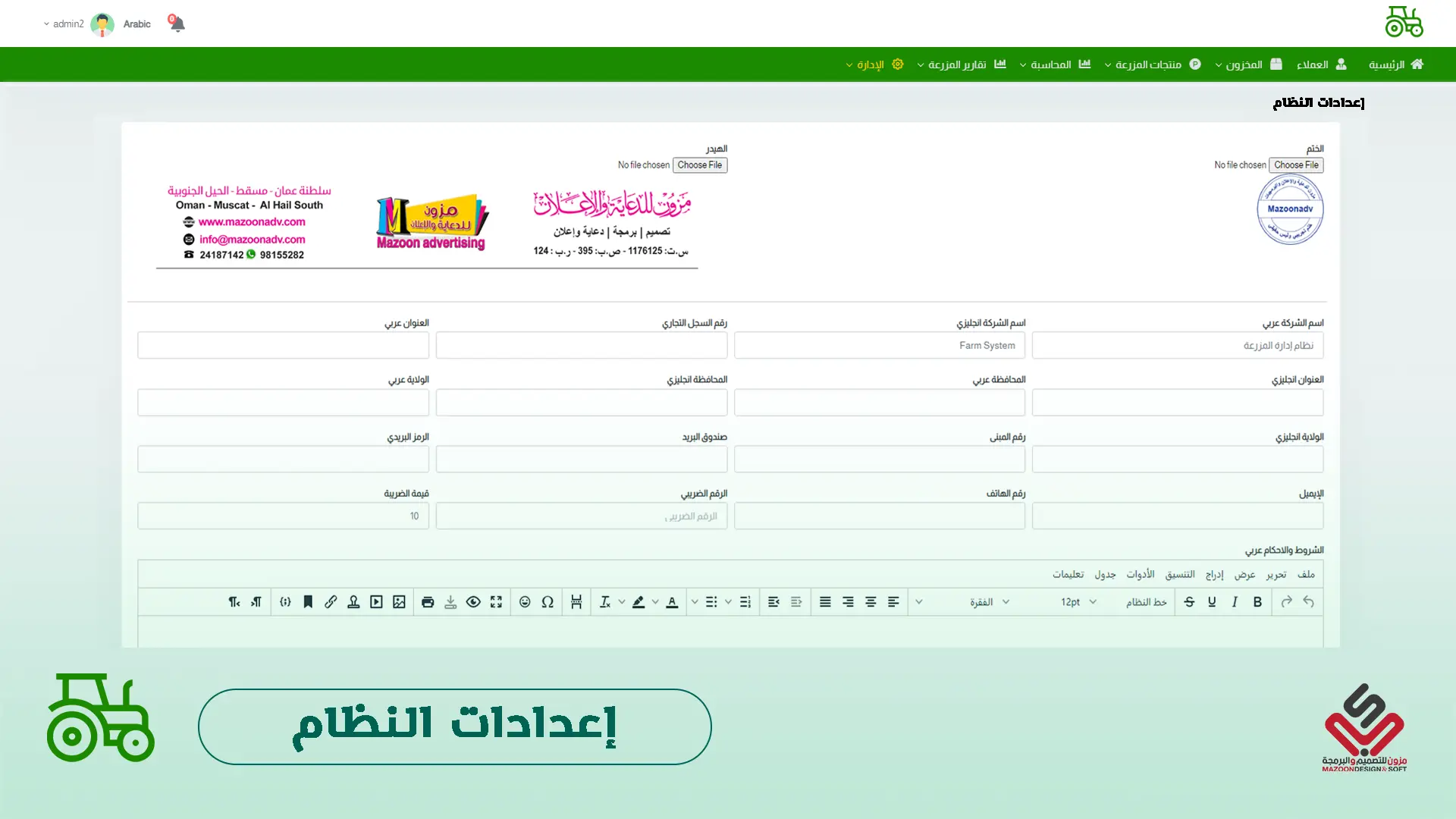 يتم تركيب نظام إدارة المزرعة ومعه الملفات التالية :