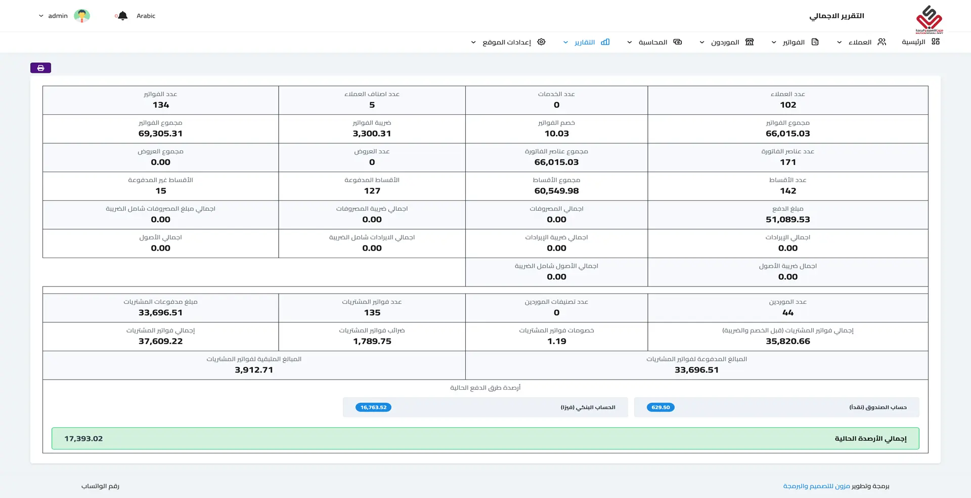 تقارير جاهزة عن المبيعات، الإيرادات، الضرائب والفواتير تساعد الإدارة والمحاسبين على اتخاذ قرارات صحيحة.