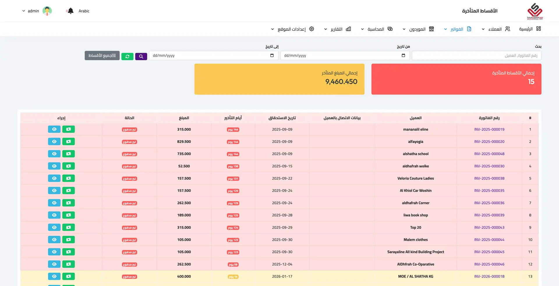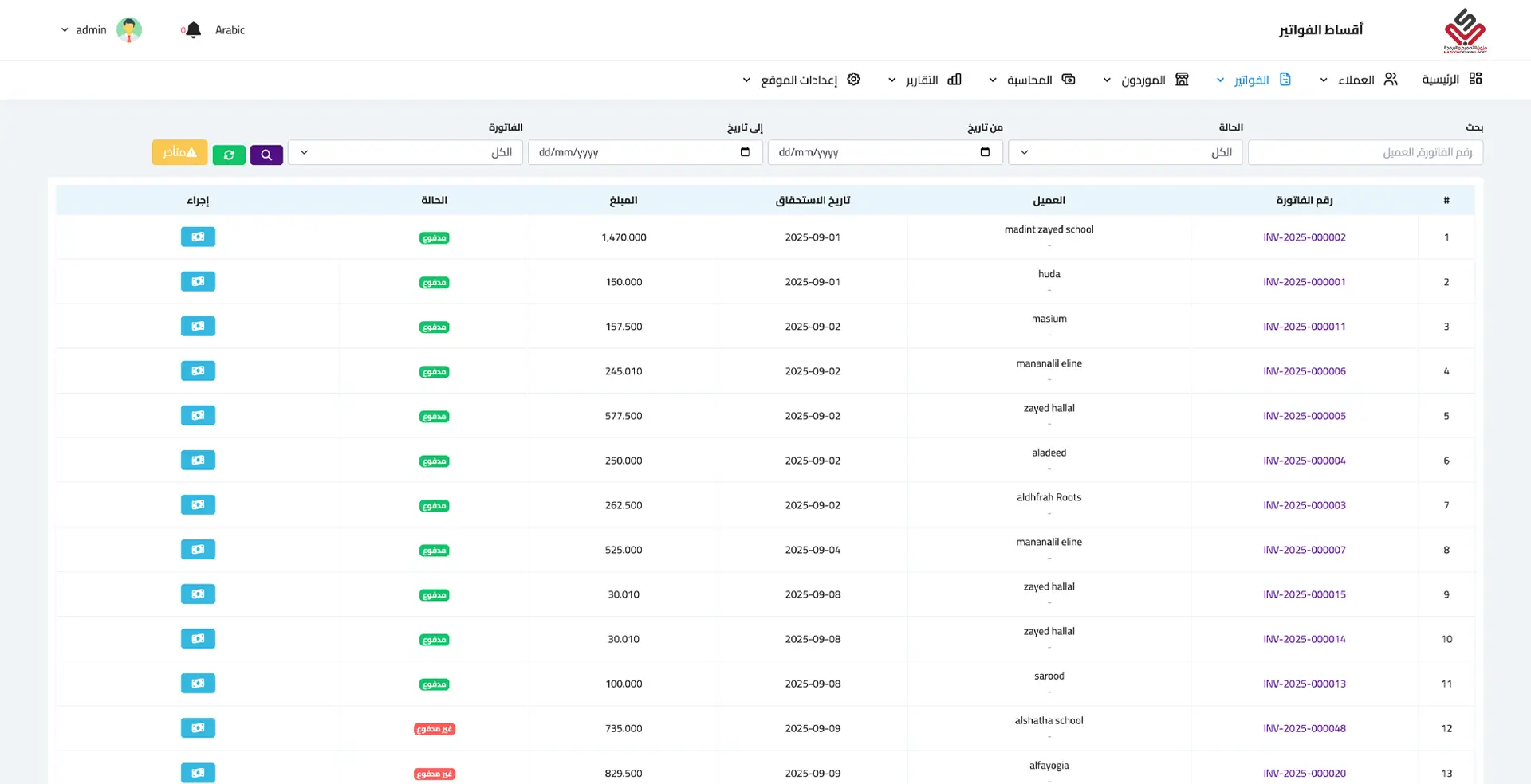 معرفة الفواتير المدفوعة والمتأخرة والمستحقة في أي وقت، مع تقارير توضح حالة التحصيل بدقة.