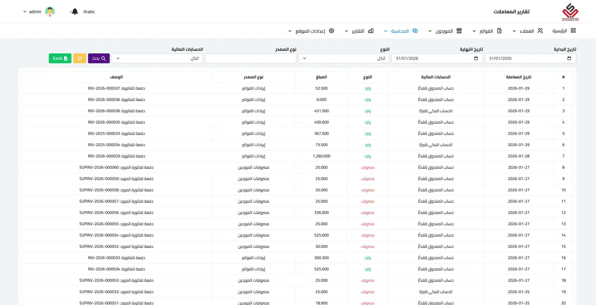 نعم، يتيح النظام تصدير الفواتير والتقارير بصيغة PDF وExcel بسهولة.