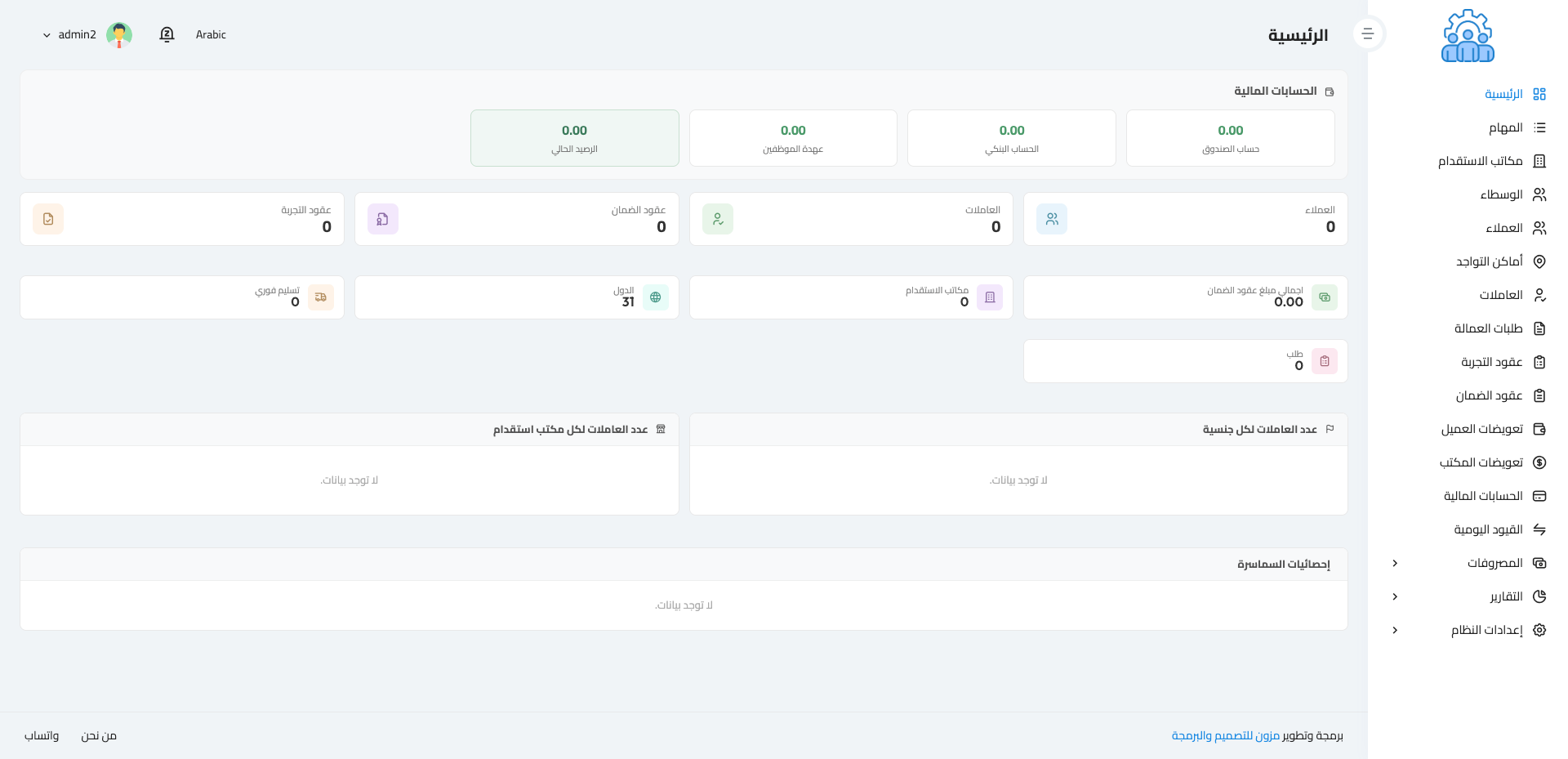 نظام مالي ومحاسبي متطور، وإدارة فعالة لعقود الاستقدام، وتقارير أداء فورية وتفاصيل العمالة في مكان واحد آمن وسهل الاستخدام.